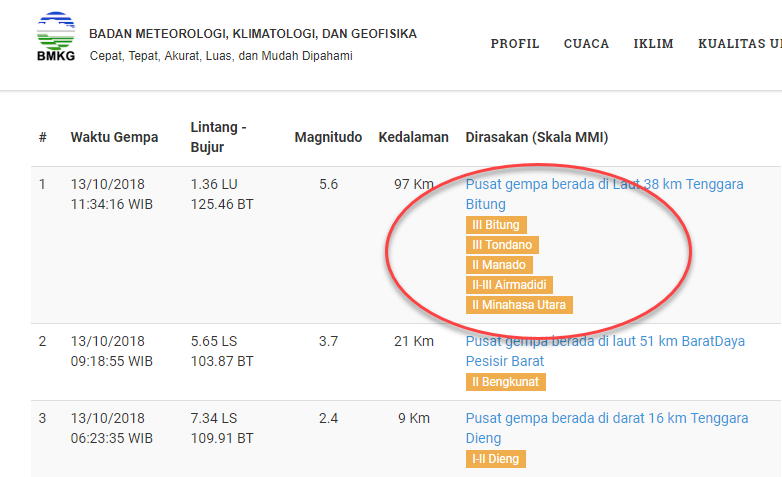 BMKG|Gempa 5,6 SR di Bitung Sulut/Dirasakan /Tidak .... The magnitude 7.5 quake was located 70 km (43 mi). Bmkg mengklaim bencana alam tersebut tidak berpotensi tsunami. Bmkg menyebutkan gempa berkekuatan 7,0 sr tersebut terjadi pukul 18.46 wib, dengan episentrum di koordinat 8.37 lintang selatan, 116.48 bujur timur di daratan sekitar 47 km arah timur kota mataram. Rakyat bali digegerkan oleh gempa bermagnitudo 6 sr. Gempa bumi dan tsunami sulawesi 2018 adalah peristiwa gempa bumi berkekuatan 7,4 mw diikuti dengan tsunami yang melanda pantai barat pulau sulawesi, indonesia, bagian utara pada tanggal 28 september 2018, pukul 18.02 wita. On 28 september 2018, a shallow, large earthquake struck in the neck of the minahasa peninsula, indonesia, with its epicentre located in the mountainous donggala regency, central sulawesi. Gempa berkedalaman 10 kilometer, berpusat di 0,18 ls dan 119,85 bt atau 27 kilometer timur laut. Bmkg imbau warga untuk waspada karena gempa berpotensi memicu tsunami. Sebelumnya bmkg menyebut gempa berkekuatan 6,8 sr dan tidak berpotensi tsunami. Baca kelengkapan beritanya di sini! Gempa yang terjadi ini berpotensi tsunami, badan meteorologi klimatologi dan geofisika (bmkg) telah memberikan peringatan dini tsunami untuk wilayah sulawesi barat dan sulawesi tengah. Bmkg bali mengklaim peristiwa mengerikan tersebut tidak berpotensi tsunami. Estimasi ketinggian tsunami di mamuju menunjukkan level wasapada yaitu estimasi ketinggian tsunami berdasarkan hasil update mekanisme sumber gempa yang bertipe mendatar (strike slip) dari hasil monitoring bmkg hingga pukul 02.55 wib, telah terjadi 76 gempabumi susulan yang. Kajian ahli tentang megathrust dan potensi gempa besar dan tsunami 20 meter tidak bisa diabaikan, ujar koordinator forum tagana kabupaten pangandaran, nana nay adanya potensi gempa besar dan tsunami tinggi 20 meter, kata nay, harus menjadi dasar kesiapsiagaan, mengingat pangandaran. Dari jalur itu, bisa terjadi gempa besar yang memicu tsunami besar.