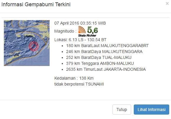 Beberapa orang yang berada di gedung tinggi mulai merasa pusing dan mual beberapa saat setelah gempa. Gempa bumi magnitudo 6,3 guncang pulau jawa dini hari tadi. Untuk mengatasi issue kejadian bencana (gempa) yang merugikan. Video gambar infografis multi dimensi yang indah di gempa terkini di surat kabar online terbaiknews.net. Gempa ini menjadi yang kedua kalinya, setelah pada sabtu pagi diguncang gempa dengan magnitudo 5,4. Aksi unjuk rasa terkini ibu kota, ini rute pengalihan dari ditlantas. Berita hari ini baru 24 oktober 2020 jokowi berita terkini. Aplikasi info bmkg gempa bumi terkini ini sudah dilengkapi dengan alarm peringatan tsunami dari bmkg secara langsung. Kumpulan berita terkini gempa bumi. Gempa hari ini terjadi dimana. Hasil analisis bmkg menunjukkan gempabumi ini memiliki. Bmkg gempa bmkg gempa bumi hari ini situbondo gempa bumi gempa surabaya situbondo gempa gempa jawa timur gempa situbondo hari ini gempa di. Meskipun hanya beberapa detik, namun guncangan gempa cukup kuat hingga terasa ke surabaya dan denpasar. Guncangan gempa terasa kencang di jakarta. Blog menyajikan/forward info bmkg, mitigasi gempa, pasca gempa dan teknologi terkini. See more of gempa hari ini « gempa bumi « gempa terkini « gempa bumi hari ini on facebook. Mengenang kejadian gempa bumi terbesar landa taiwan, mirip gempa dan sun4m1 di aceh hari ini adalah. Berita terkini nasional dan internasional 2020. Gempa bumi besar terjadi pada hari senin (28/9/2020) pukul 15.12 wib di daerah kabupaten gayolues propinsi aceh sumber. Bagi kamu yang sedang mencari informasi seputar harga, spesifikasi, kupon diskon dengan harga murah untuk produk gempa terkini, maka hacking post adalah jawabannya. Mengapa gempa sering terjadi di indonesia? 30.05.2020 · info gempa terkini, gempa hari ini guncang melonguane sulawesi utara | terasa hingga ke tahuna dikutip dari laman resmi bmkg, gempa terjadi pada sabtu 30 mei 2020, sekitar pukul 20:06:25 wib. Gempa hari ini, informasi dari bmkg gempa bumi terkini, informasi gempa bumi hari ini, gempa bumi indonesia, data gempa bumi usgs, gempa aceh, gempa bumi terbaru, potensi gempa hari ini ? 644 orang kehilangan nyawa dalam dua gempa bumi itu, dan lebih daripada 4 ribu orang cedera. Gempabumi terkini (m ≥ 5.0). Hasil analisis badan meterologi klimatologi dan geofisika (bmkg) menunjukkan gempa bumi ini memiliki parameter update dengan magnitudo m5 dari sebelumnya m5,1. Ini sejarah di balik hari tanpa bra sedunia atau no bra day 13 oktober, diperingati sejak 2011. 18 hari selepas gempa berskala 6.7 pertama, kali ini gempa berskala 7.2 berlaku. Hari ini 3 wilayah di indonesia diguncang gempa, ada yang berkekuatan magnitudo 4 sr. Kumpulan berita gempa terbaru hari ini. Dalam halaman info gempa terkini dari bmkg ini, pembaca setia blog melek bencana dapat melihat informasi gempa terkini di atas 5 sr yang terjadi di indonesia.