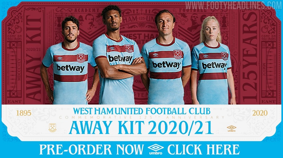 West Ham United 125th Anniversary 2020-21 Umbro Home Kit .... The kit features detailing to commemorate the clubs 125th anniversary, allowing you to reminisce of the clubs most iconic moments from the boleyn. Alongside the home kit, the away kit is inspired by the club's golden period of the 1960s. The away kit and third kit offerings are also likely to go down a treat with fans. Wacky and zany away kits are all well and good, but there's something pleasing about ones that are still demonstrably in club colours. As west ham enter a new campaign at the london stadium, cheer the hammers on throughout the 20/21 season with their brand new kit by umbro. The smart jersey represents a modern twist on the classic away strip of the 1960s, worn by world cup winners bobby moore, geoff hurst and martin peters. The two horizontal bands on this work a treat and even the round collar. Browse kitbag for official west ham united kits, jerseys and football shirts! Worst west ham kits ever (with west ham fan tv). West ham have chosen to commemorate the 125th anniversary of their existence by changing basically nothing about their strip for next season and charging you full price for it.